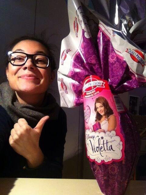 andou postando em sua conta no Twitter, diversas fotos, com Clara Alonso, Candelaria Molfese, Jorge Blanco, com sua mãe e até foto de uma amiga com o Ovo de Páscoa de Violetta.